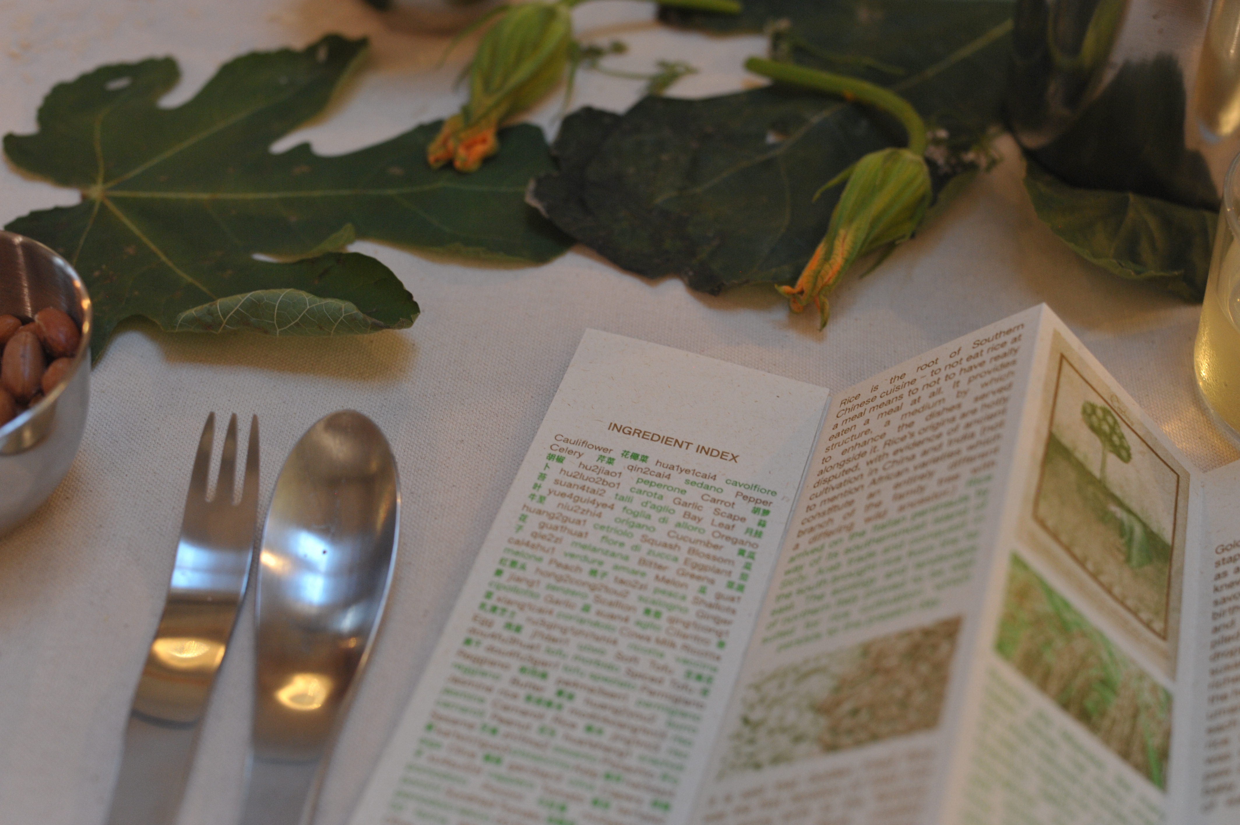 Italian and Chinese (including their hyphenate –American permutations) dishes, ingredients, and cooking methods shifted and recombined to produce a meal which necessarily accounted for the various cultural and ecological entanglements that constitute cuisine. This includes dynamics of migration, exchange, domestication, contamination, and labor. The result was a response to and an examination of decontextualized culinary fusion and its influence on food systems.